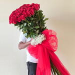 Произведите незабываемое впечатление с помощью «Великой преданности» — ультра-роскошной композиции из 75 премиальных роз на длинных стеблях, каждая длиной невероятные 160 см. Созданный для торжественных жестов и моментов, которые случаются раз в жизни, этот букет приковывает внимание своей впечатляющей высотой, пышными красными цветами и роскошным оформлением. Идеально подходит для предложений руки и сердца, юбилеев, роскошных мероприятий или смелых выражений любви. Эти розы символизируют глубокую страсть, элегантность и преданность. Тщательно отобранные по размеру, свежести и насыщенности цвета, эти розы превратят любое пространство в романтическую и восхитительную сцену. Это не просто букет — это целое событие.