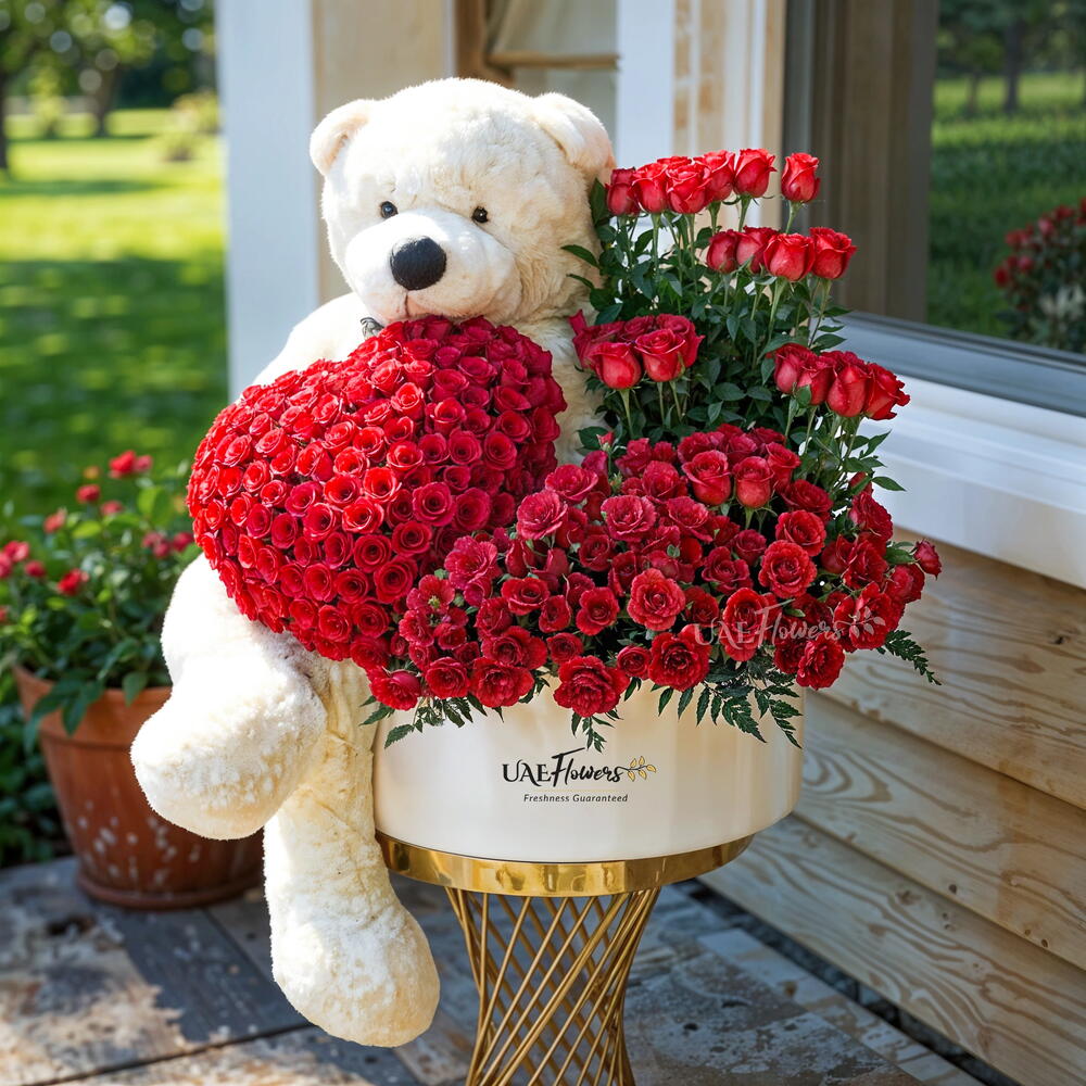 Произведите незабываемое впечатление этим роскошным набором с цветочным мишкой.