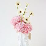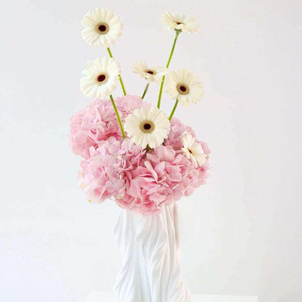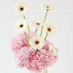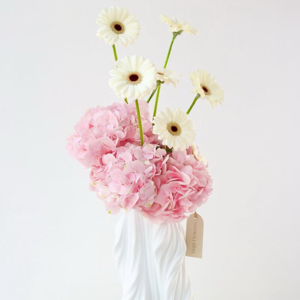 Hydrangea - 5 шт. белая ваза - 1 шт. белая маргаритка - 8 шт.