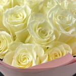 Окунитесь в классическую красоту нашего букета «Вечная элегантность», в котором 15 безупречных белых роз. Каждая роза тщательно отобрана за безупречные лепестки и спокойный, чистый оттенок, символизируя чистоту, любовь и уважение. Идеально подходит для любого повода — от свадеб и годовщин до искренних проявлений чувств, эта элегантная композиция передаёт послание утончённой грации и изысканности. Будь то празднование особого момента или просто выражение ваших чувств, эти белые розы станут прекрасным и запоминающимся подарком.