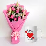 Pink rose - 5 шт. Wrapping - 1 шт. lilly - 3 шт. кружка для лучшей мамы - 1 шт.