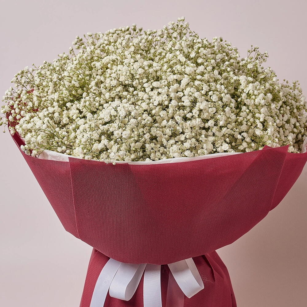 Tortured Poet – 51 белая гипсофила в бордовой обертке | роскошный белый букет | романтический подарок для нее | цветы на годовщину |