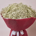 Глубоко поэтичная и выразительная композиция, созданная для человека, который ценит эмоции, артистизм и элегантность. В этот букет входят 51 воздушный белый цветок гипсофилы, завернутый в насыщенную бордовую бумагу, создавая смелый, но при этом деликатный визуальный контраст, который выглядит современно и готов к бутиковому представлению. Нежная белая гипсофила символизирует чистоту и изящество, в то время как бордовая упаковка придаёт глубину, драматизм и оттенок романтической интенсивности — идеальная дань интроспективным, искренним моментам. Идеально подходит для юбилеев, дней рождения, романтических жестов или в подарок тому, кому близки утончённость и эмоции. Созданный для неё, этот букет дарит фотогеничный, премиальный и незабываемый цветочный опыт — поэтическое выражение элегантности, чувственности и вечного стиля.