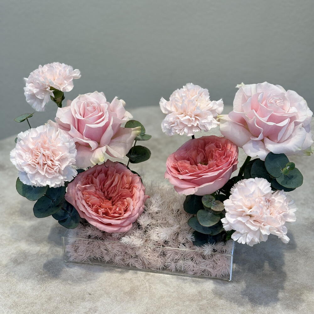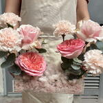 Mondial - 2 шт. lagurus - 1 шт. pink carnation - 4 шт. acrylic - 1 шт. rose expression - 2 шт.