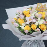 Рамадан Карим! Сделайте встречи на Ид ярче или отправьте пожелания в Рамадан с этим красивым букетом с жёлтыми розами, розовыми тюльпанами и мини-розами. ПРИМЕЧАНИЕ: Если ваши цветы прибывают в виде закрытых бутонов, это нормально. Им просто нужен обрезок и вода, и они начнут прекрасно распускаться в кратчайшие сроки! УХОД ЗА ЦВЕТАМИ: • Цветам всегда предпочтительнее находиться при температуре от 8 до 22 градусов Цельсия, и всегда избегайте размещения цветов на прямом солнечном свете, рядом с вентиляционными отверстиями отопления или охлаждения, прямо под потолочными вентиляторами или в любом месте с повышенной температурой вокруг них. • Вы можете снять упаковку и дать им подышать — поместите их в чистую вазу с водой. • Меняйте воду ежедневно. Обрежьте стебли как минимум на 2 см, удалите листья ниже уровня воды. • Хотя мы всегда стремимся обеспечить точное соответствие продуктов нашим фотографиям, от сезона к сезону и в зависимости от наличия наши флористы могут быть вынуждены заменить один или несколько цветов на варианты равного или более высокого качества, внешнего вида и стоимости. Будьте уверены, что мы сделаем ваш цветочный букет великолепным.