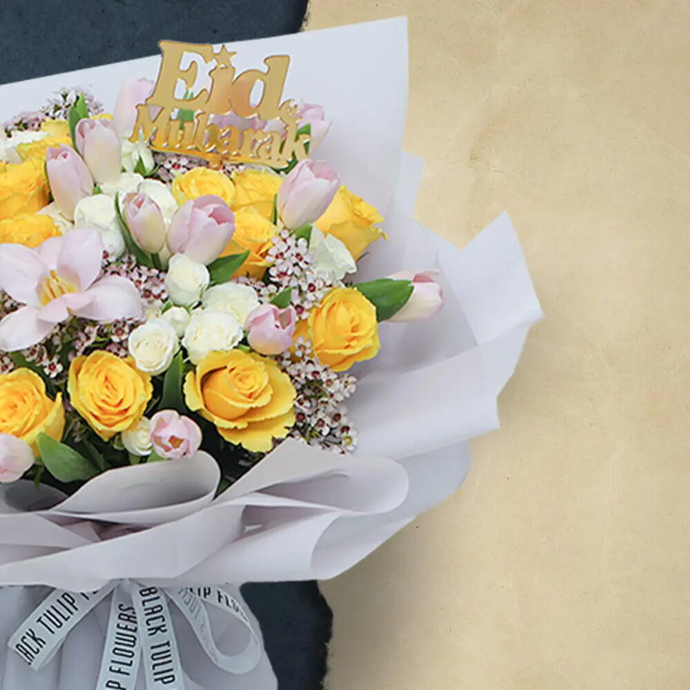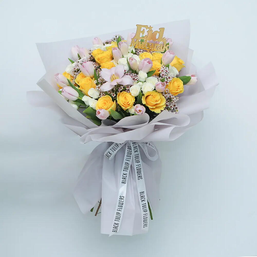 Рамадан Карим! Сделайте встречи на Ид ярче или отправьте пожелания в Рамадан с этим красивым букетом с жёлтыми розами, розовыми тюльпанами и мини-розами. ПРИМЕЧАНИЕ: Если ваши цветы прибывают в виде закрытых бутонов, это нормально. Им просто нужен обрезок и вода, и они начнут прекрасно распускаться в кратчайшие сроки! УХОД ЗА ЦВЕТАМИ: • Цветам всегда предпочтительнее находиться при температуре от 8 до 22 градусов Цельсия, и всегда избегайте размещения цветов на прямом солнечном свете, рядом с вентиляционными отверстиями отопления или охлаждения, прямо под потолочными вентиляторами или в любом месте с повышенной температурой вокруг них. • Вы можете снять упаковку и дать им подышать — поместите их в чистую вазу с водой. • Меняйте воду ежедневно. Обрежьте стебли как минимум на 2 см, удалите листья ниже уровня воды. • Хотя мы всегда стремимся обеспечить точное соответствие продуктов нашим фотографиям, от сезона к сезону и в зависимости от наличия наши флористы могут быть вынуждены заменить один или несколько цветов на варианты равного или более высокого качества, внешнего вида и стоимости. Будьте уверены, что мы сделаем ваш цветочный букет великолепным.