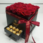Red rose - 16 шт. Box - 1 шт. Chocolate - 16 шт.