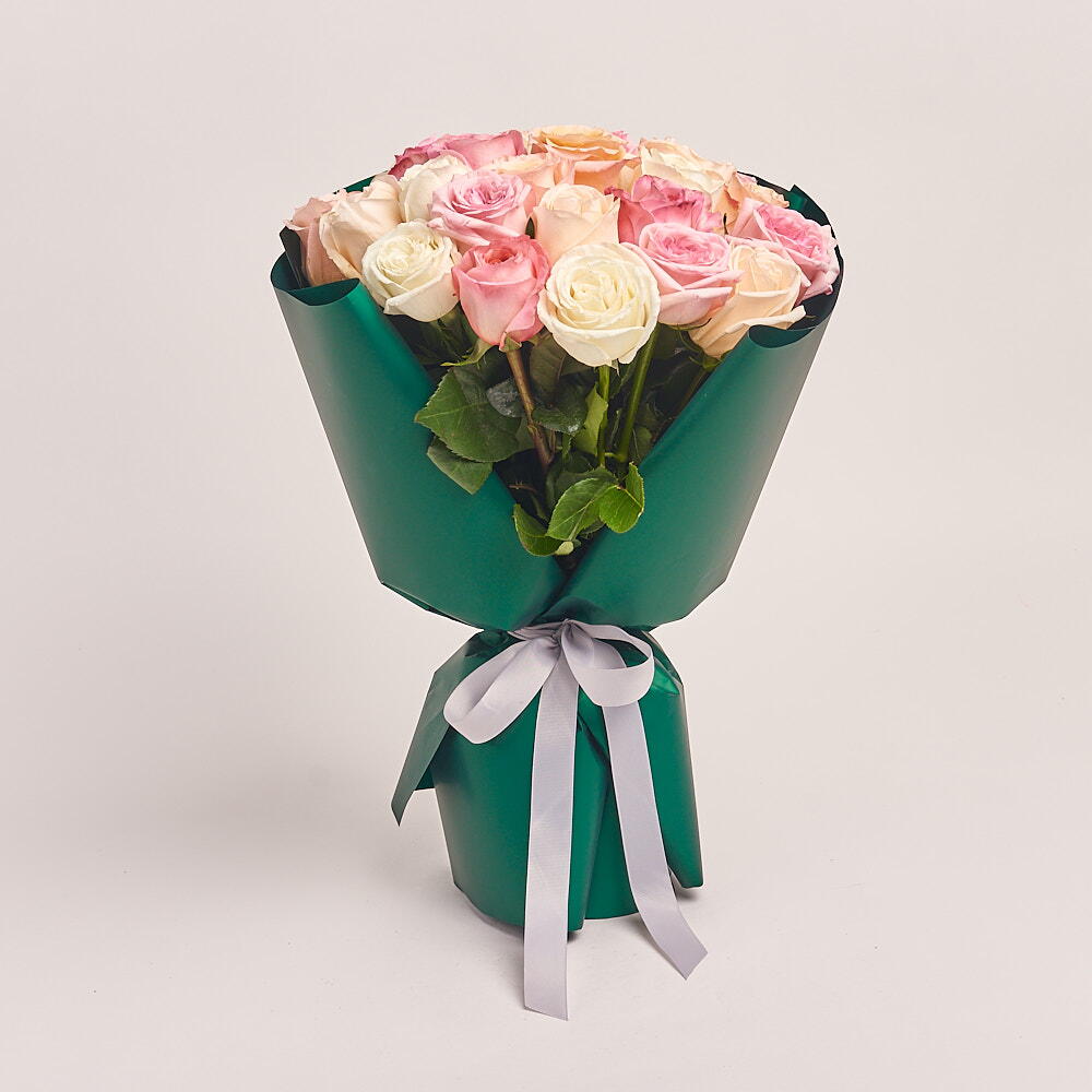 Этот очаровательный моно-букет — деликатная композиция из 15 нежно-розовых роз, переплетённых с 10 безупречно белыми розами. Каждый стебель тщательно отобран, чтобы создать визуальную симфонию, излучающую элегантность и очарование. Подарите этот букет, чтобы выразить свои искренние чувства или просто добавить нотку изящества и красоты в ваше пространство.