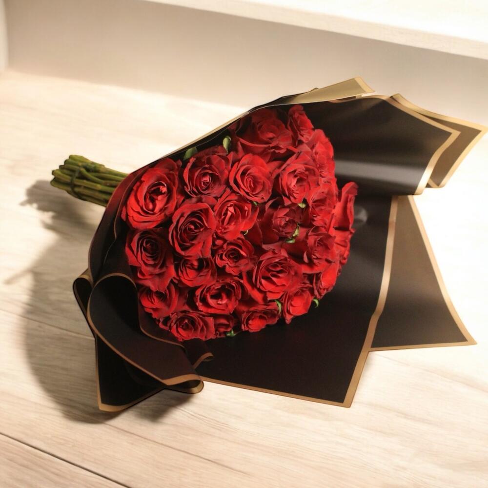 Совершите грандиозный романтический жест с нашим букетом из 30 красных роз, завернутым в элегантную черную бумагу для драматичного и роскошного эффекта. Каждая роза тщательно отобрана за глубокий красный оттенок, свежесть и бархатистую текстуру — символ глубокой любви, восхищения и страсти. Смелый контраст насыщенных красных роз на фоне гладкой черной упаковки создает поразительное визуальное впечатление, говорящее о вневременной романтике и утонченной изысканности. Будь то выражение искренних чувств или празднование особого момента, этот букет создан, чтобы оставить неизгладимое впечатление.