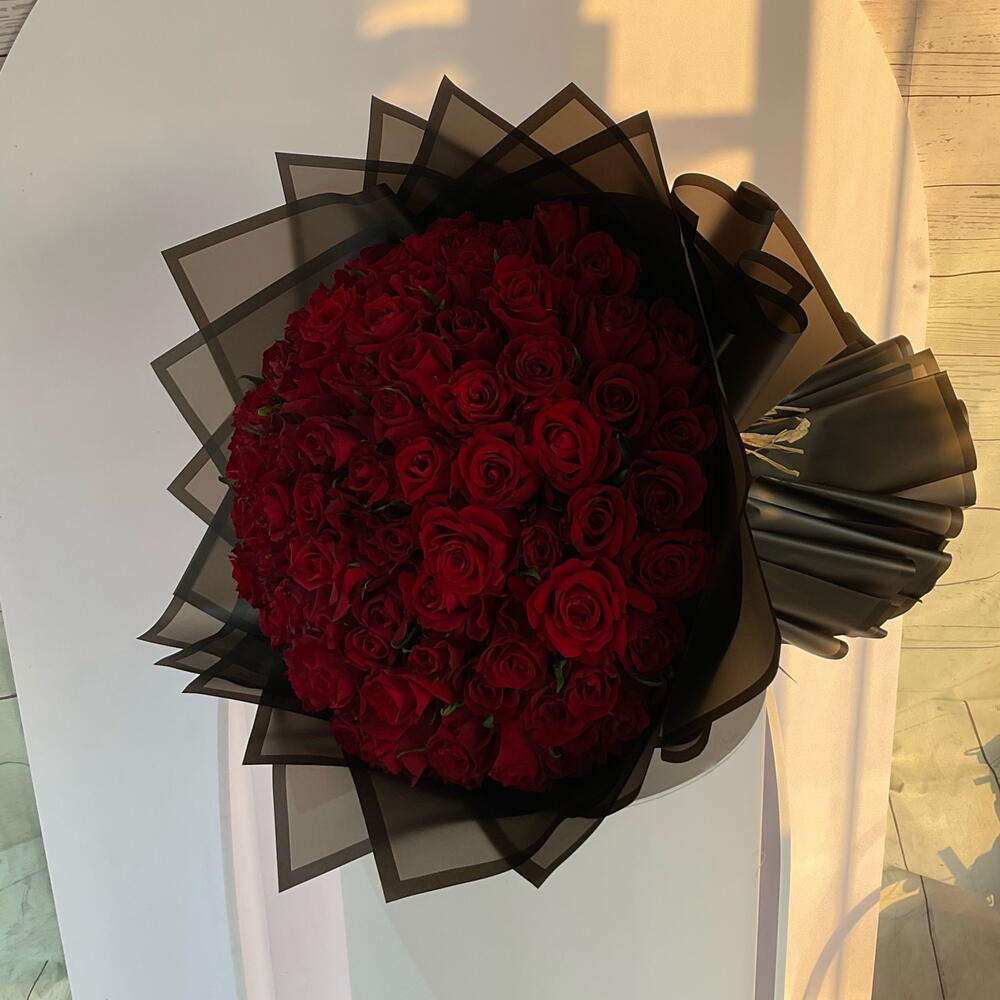 Погрузитесь в вечное очарование этого изысканного свадебного букета. В букете 50 роскошных красных роз, тщательно собранных в потрясающе классическую композицию и завернутых в 5 со вкусом элегантных элементов чёрной упаковки. Букет завершён 3 грациозными лентами, создающими возвышенное сочетание страсти и утончённости. Поистине захватывающий символ любви и преданности, этот букет — идеальное украшение для вашего великолепного свадебного дня.