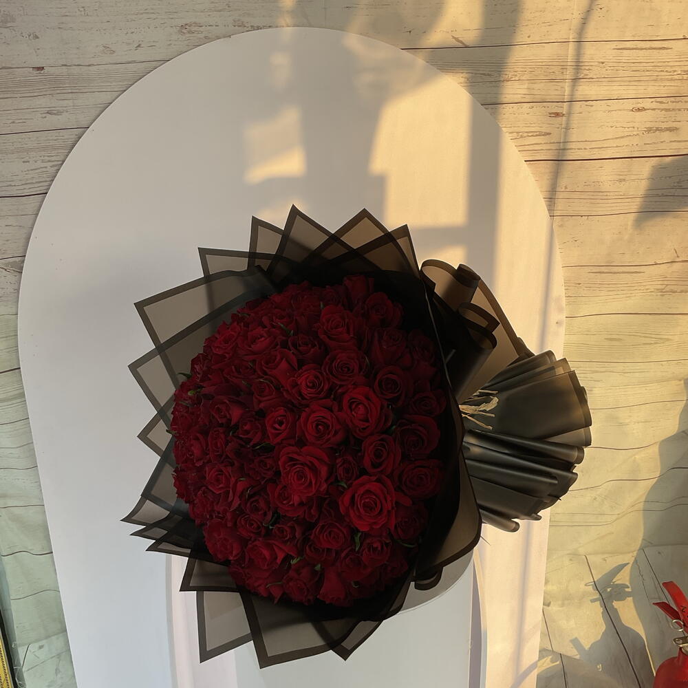Red rose - 50 шт. Ribbon - 3 шт. черная упаковка - 5 шт.
