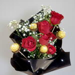 Red rose - 6 шт. Ferrero rocher - 5 шт. гипсофила - 1 шт.