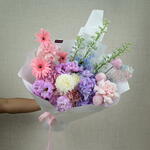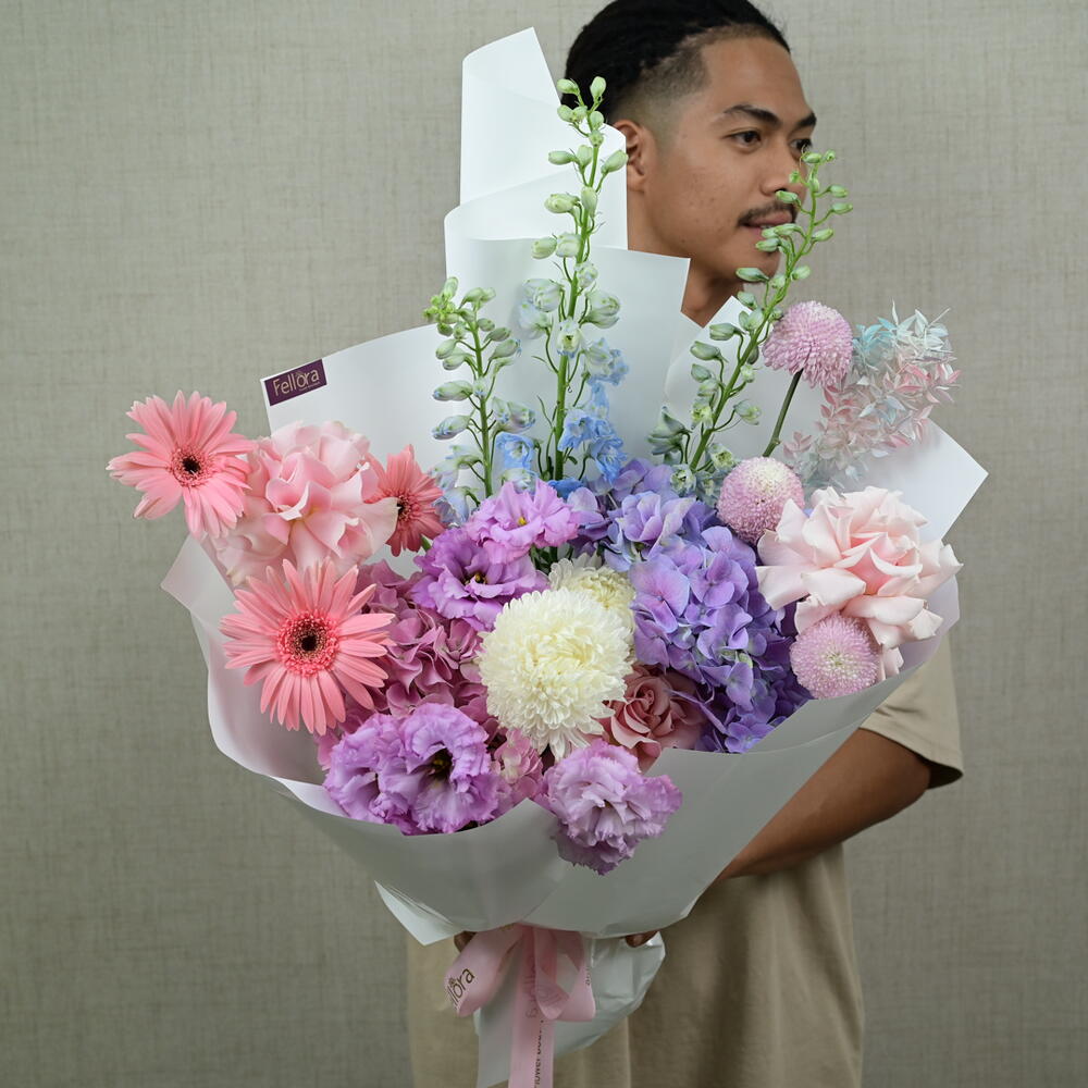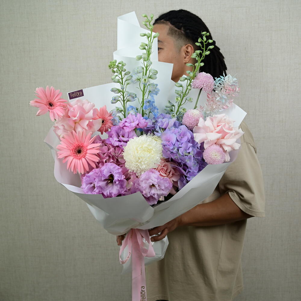 Окунитесь в царство очарования с нашим букетом «Фантазия единорога», тщательно подобранным цветочным бутиком Fellora Flower Boutique Dubai. В состав этой волшебной композиции входят: 3 дельфиниума: добавляют высоты и причудливости своими колючими цветами. 3 герберы: привносят яркие цвета и жизнерадостное настроение в букет. 2 гортензии: придают букету пышность и мягкую, нежную текстуру. 4 эустомы: добавляют элегантности своими гофрированными лепестками. 3 хризантемы мимоко: дарят изысканную красоту своими уникальными цветами. 2 декоративных хризантемы: добавляют яркости и разнообразия. 3 эквадорские розы: наполняют букет романтикой и роскошью своими крупными цветами. 1 стабилизированный одиночный рускус: придает букету стойкий оттенок зелени и текстуры. Размеры: Высота: 60 см Ширина: 50 см Букет «Фантазия единорога» идеально подходит для тех, кто ценит всё причудливое и мечтательное. Он идеально подходит для особых случаев, праздников или в качестве волшебного подарка. Позвольте Fellora Flower Boutique Dubai доставить это фантастическое цветочное творение прямо к вашему порогу, добавив нотку очарования в ваш интерьер. Почему стоит выбрать букет «Фантазия единорога»? Гармоничное сочетание цветов, пробуждающее ощущение фантазии и очарования. Он идеально подходит для выражения креативности, радости и чуда в любой ситуации. Искусно составленный букет создаёт потрясающий и гармоничный образ. Ощутите красоту и волшебство букета «Фантазия единорога» от Fellora Flower Boutique Dubai. Закажите сейчас, и мы воплотим этот очаровательный цветочный шедевр в вашу жизнь.