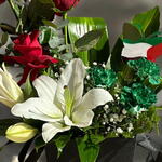 Отпразднуйте Национальный день ОАЭ с Unity in Bloom, изящно выполненной композицией в сумочке, символизирующей гордость и единство. В составе: 3 ярко-зеленые гвоздики, 4 эффектные красные розы и безупречно белая лилия. Композиция элегантно дополнена декоративными наполнителями и бабочкой в цветах флага ОАЭ, что придает патриотичный акцент. Идеально, чтобы уникально и от души почтить дух нации.