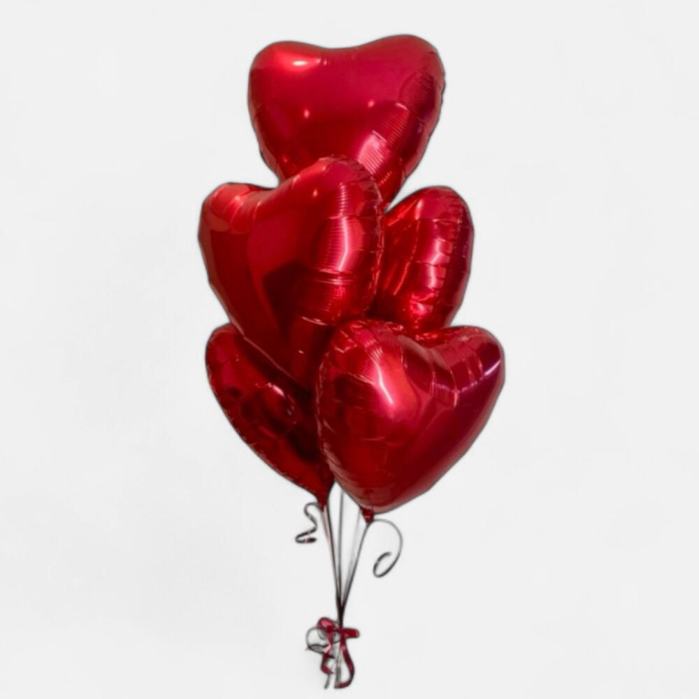Red rose - 25 шт. Ferrero rocher - 16 шт. Basket - 1 шт. Red ribbon - 1 шт. красные гелиевые шары в форме сердца - 5 шт.