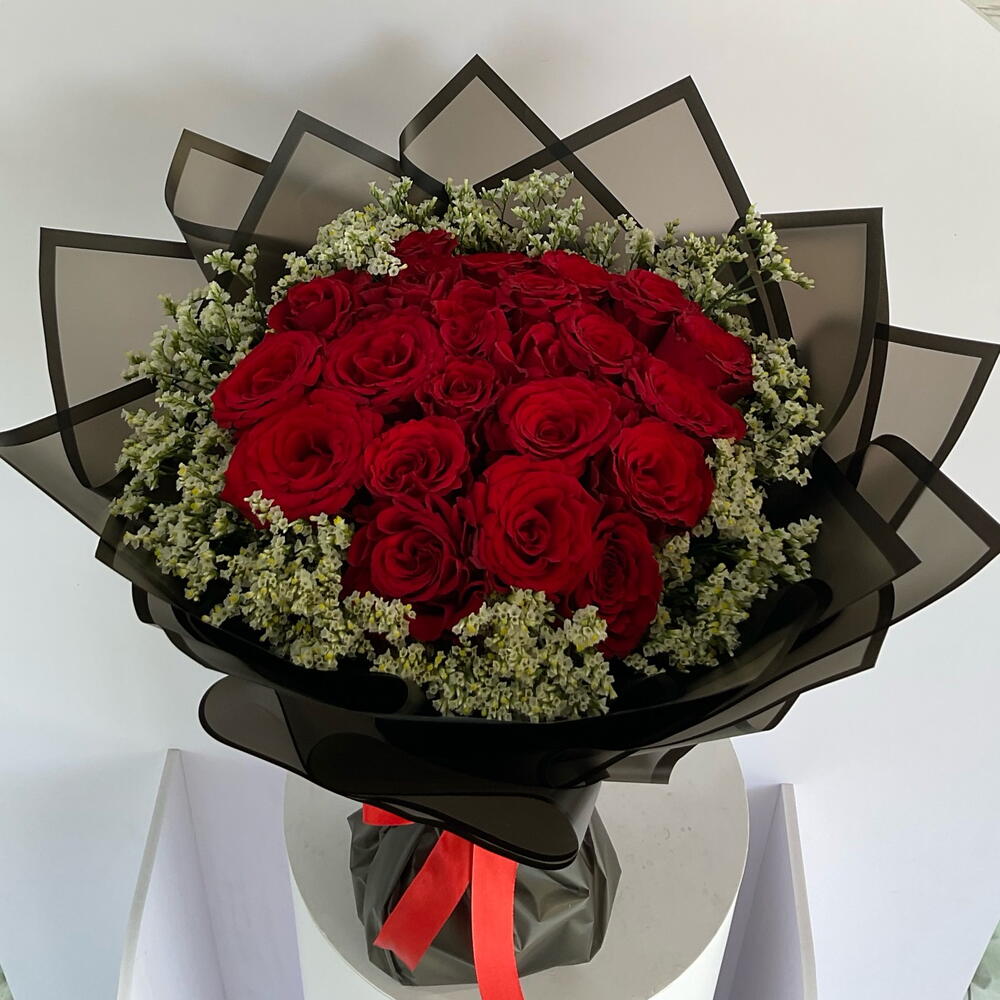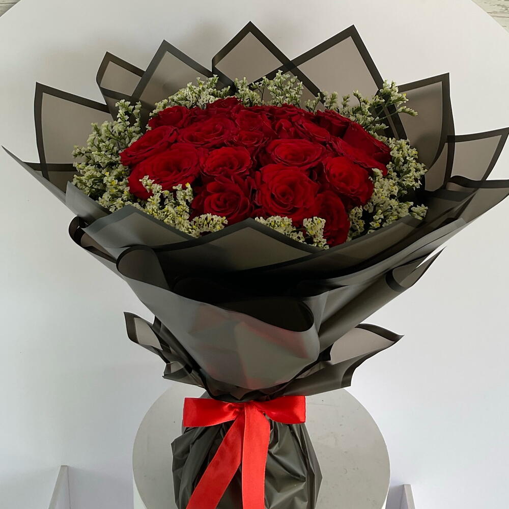 Погрузитесь в непревзойденное цветочное приключение с этим монобукетом из 24 насыщенных и ярких роз в сочетании с 10 нежными лимониумами. Этот букет, красиво упакованный в 5 листов элегантной упаковочной бумаги, — воплощение простоты и элегантности; идеальный подарок, чтобы выразить ваши самые искренние чувства.