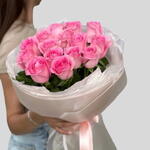 Побалуйте себя роскошным очарованием этого потрясающего цветочного букета, состоящего примерно из 15 изящно распустившихся нежно-розовых роз. Каждый цветок отобран вручную за пышные лепестки, яркий цвет и исключительную свежесть.