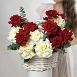 Этот букет из 51 красных и белых французских роз в корзине — воплощение роскоши, элегантности и утончённости. Эти цветы, похожие на пионы, уложены в классической корзине, придавая букету изысканный вид.