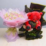 Pink rose - 50 шт. красный плюшевый мишка - 1 шт.