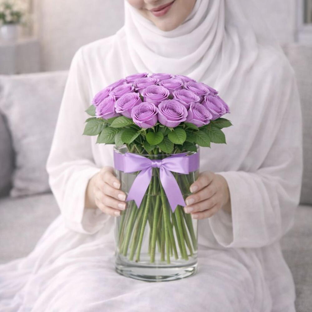 Vase - 1 шт. фиолетовые розы - 15 шт.