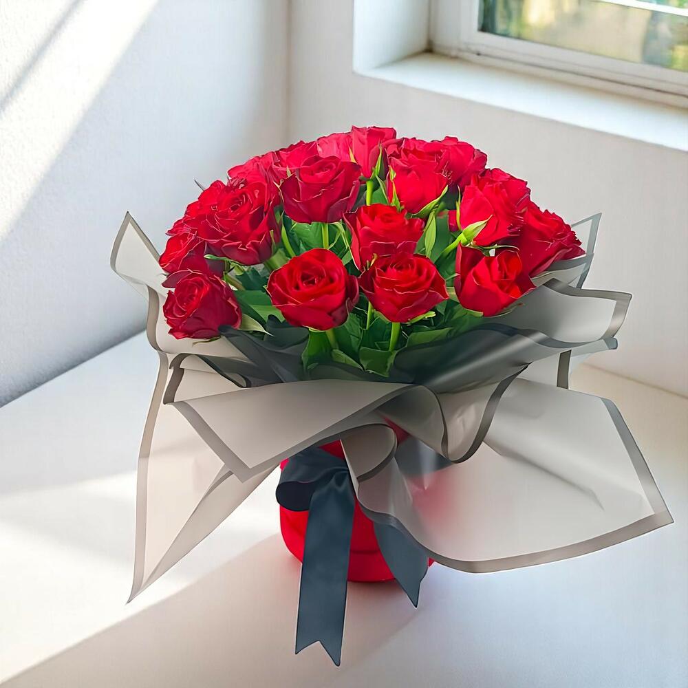 Элегантный букет красных роз для любви и романтики