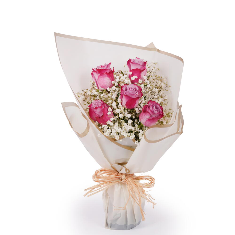 Ribbon - 1 шт. фиолетовые розы - 5 шт. оберточная бумага - 1 шт.
