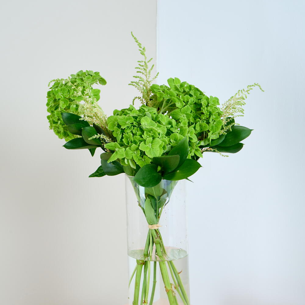 Ruscus - 1 шт. Hydrangea - 5 шт. Vase - 1 шт. astilbe - 3 шт.