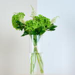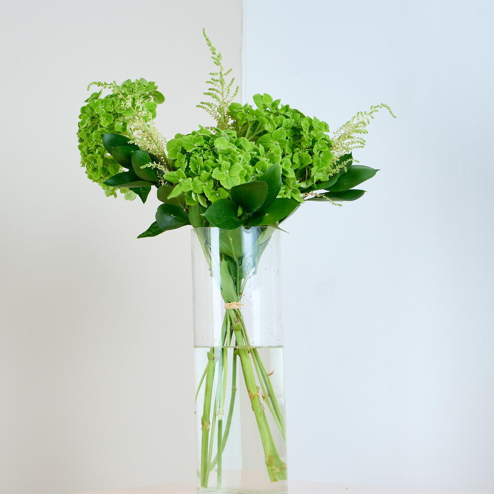 Зелёная гармония — освежающее проявление элегантности природы. Пышные зелёные гортензии сочетаются с пушистой красотой астильбы, а нежные веточки рускуса добавляют оттенок естественной изящности. Размещённая в стильной высокой прозрачной цилиндрической вазе, эта композиция приносит свежесть природы в любое пространство. Сочетание текстур и оттенков зелёного создаёт успокаивающий, но в то же время изысканный образ, делая Зелёную гармонию идеальным выбором для тех, кто ценит тихое очарование и элегантность природы. Эта композиция легко дополняет как современный, так и классический интерьер. Детали подарка: Гортензия Астильба Рускус Ваза