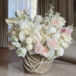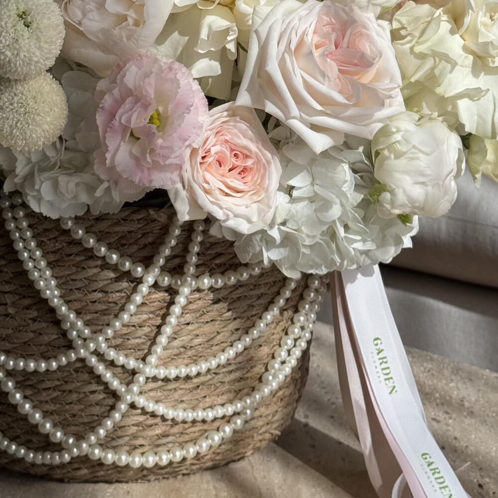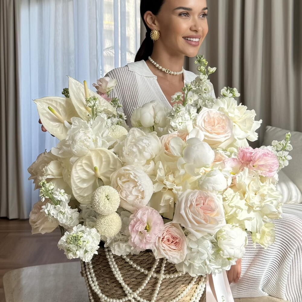 Luxurious basket of white and blush blooms with delicate roses and peonies, adorned with pearl accents — an elegant gift for the most special moments. Includes anthurium, lisianthus, peony, Moonstone rose, matthiola, O’hara rose. The set comes with a personalized card, care instructions and flower fertilizer. *Flower delivery today Perfect for: - a gift for her; - weddings or anniversaries; - birthday; - perfect dates; - gift add-ons; - baby showers; - newborn gift; - gifts with no occasion; - VIP events or luxury floral surprise.