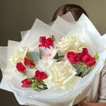 Сделайте любое событие ярче с нашим букетом. Эта потрясающая композиция включает сияющие кустовые розы, безупречно белые французские розы и хризантемы, дополненные ароматным эвкалиптом. Сочетание ярких красок и свежей зелени создаёт живую, элегантную композицию, которая идеально подходит для празднования особых моментов или просто чтобы добавить нотку радости в чей‑то день. Доставляется красиво оформленным и готовым произвести впечатление.