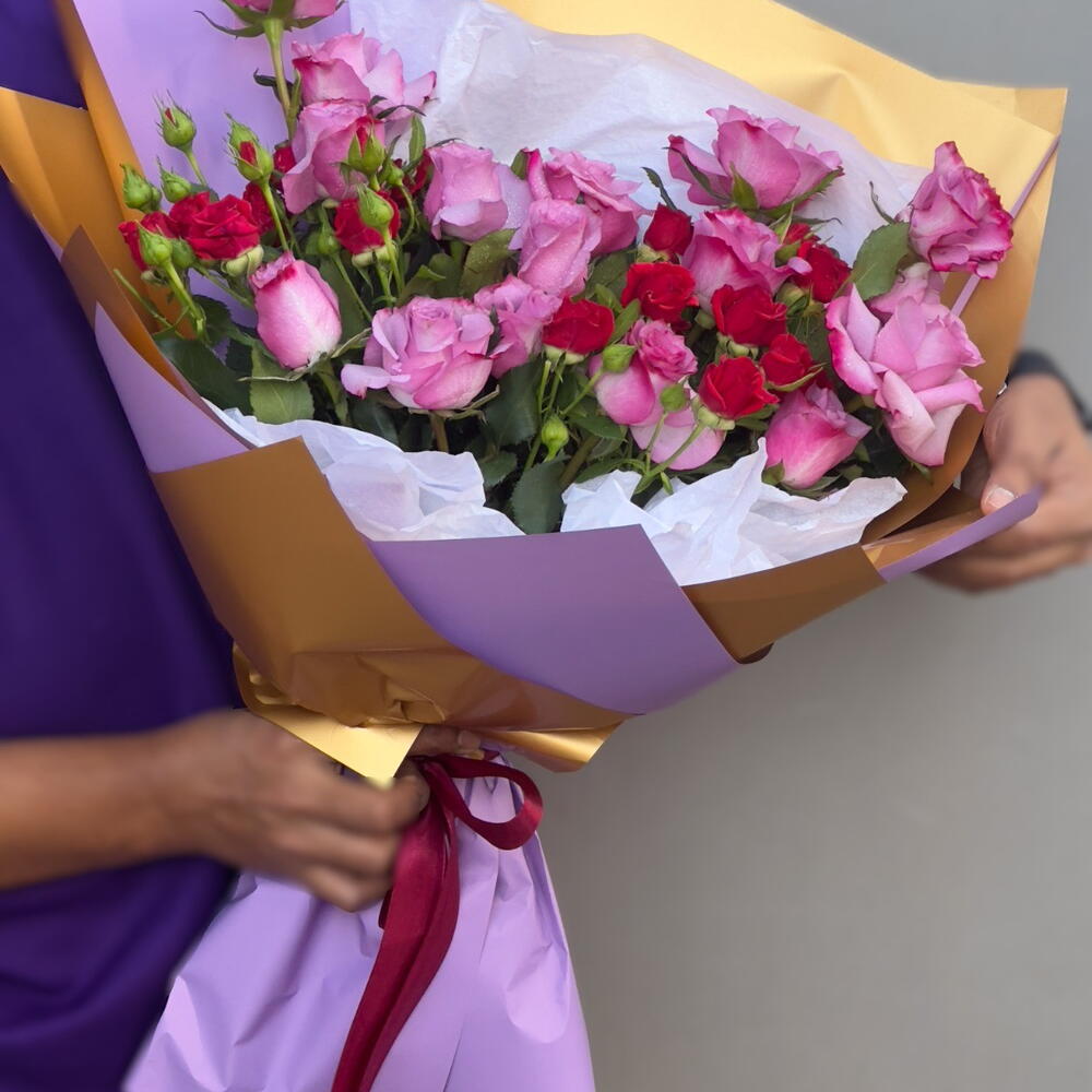 Сделайте каждый жест незабываемым с нашим букетом роз «Королевский пурпурно-красный» – эффектной композицией из 15 королевских пурпурных роз и 2 ярких красных кустовых роз. Этот уникальный букет сочетает в себе элегантность и таинственность фиолетового цвета со страстью и нежностью, которые символизирует красный. Этот букет идеально подходит для годовщин, романтических сюрпризов или смелых признаний в любви. Этот букет создан, чтобы оставить неизгладимое впечатление. Упакованный в высококачественные материалы и бережно связанный вручную, он больше, чем просто букет – это признание в восхищении, интриге и глубоких чувствах. 💜❤️ Не бойтесь быть незабываемым. Закажите букет роз «Королевский пурпурно-красный» сегодня с доставкой в тот же день по всему Дубаю!