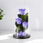 Фиолетовые стабилизированные розы в трио из стеклянных колпаков