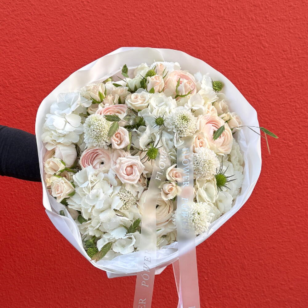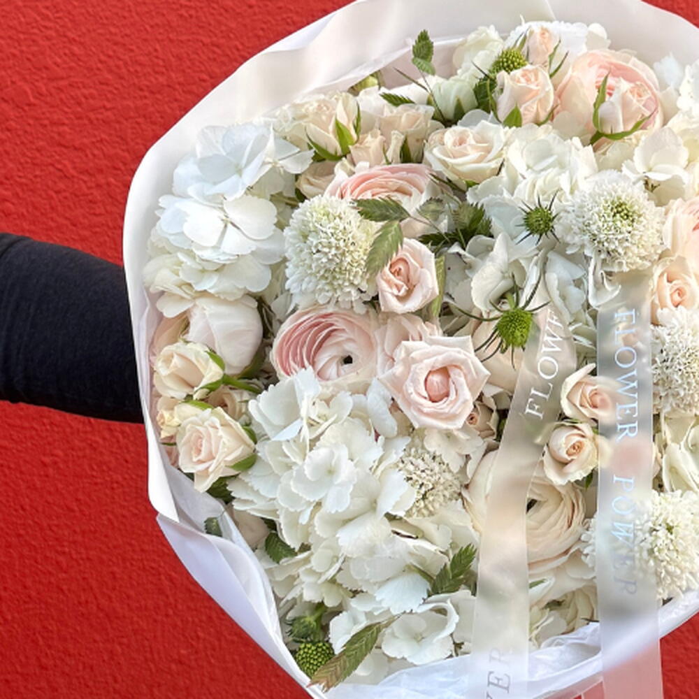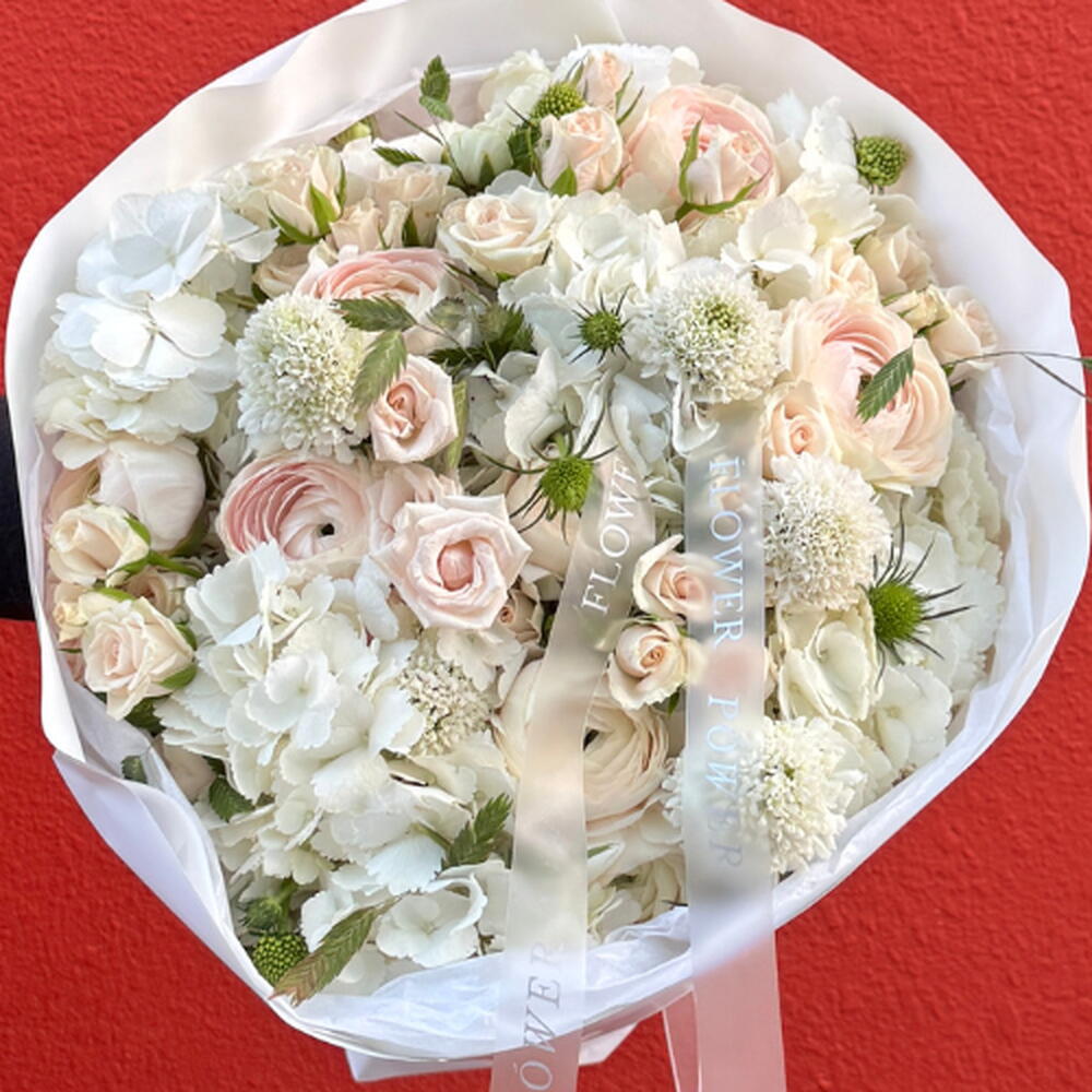 Окунитесь в вневременную элегантность белоснежного сада с нашей композицией «Причудливый белый». В отличие от стандартного букета, эта композиция представляет собой тщательно подобранную коллекцию редких текстур и цветов премиум-класса. Мягкие, пышные гортензии создают воздушную основу для изысканных, многолепестковых фарфоровых кустовых роз и романтичных ранункулюсов.