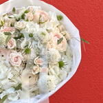 hydrangea white - 5 шт. ranunculus light pink - 10 шт. chasmantium - 5 шт. скабиоза белая - 5 шт. спрей из роз porcelena - 5 шт.