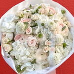 Причудливо-белый: букет белых гортензий, роз и скабиозы