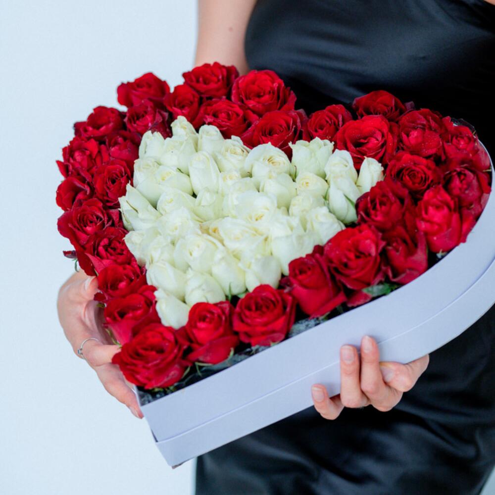 Прошепчите нежные слова с букетом из белоснежных и красных роз. Элегантный и неподвластный времени, этот букет символизирует чистоту и искренность вашей любви.