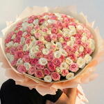 Большой букет из белых и розовых роз 🌸🤍 Потрясающий крупный букет, представляющий собой элегантное сочетание свежих белых и нежно-розовых роз, искусно составленный вручную для создания вневременного и романтического образа. Упакованный в роскошную бумагу и отделанный изысканными деталями, этот букет идеально подходит для свадеб, юбилеев, дней рождения и других торжественных случаев. ✔️ Премиальные свежие розы ✔️ Элегантная гармония белого и розового цветов ✔️ Большой, пышный букет ✔️ Создан вручную профессиональными флористами 📍 Дизайн: Bella Fiora 🚚 Возможна доставка в тот же день