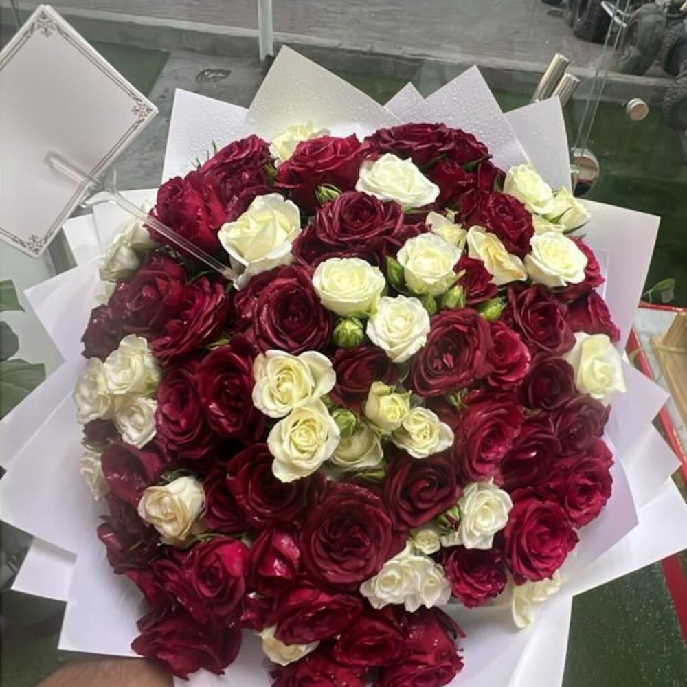 Букет белых и красных роз