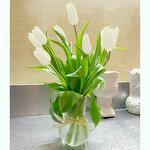 Элегантная, чистая и неподвластная времени ваза «Белые тюльпаны» — идеальный символ умиротворения и красоты. Эти свежие тюльпаны, расположенные в минималистичной вазе, привнесут нежное очарование в любое пространство. Идеально подходит для продуманных подарков, тихих уголков или вашего собственного уголка безмятежности.