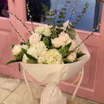 Великолепные белые сезонные цветы, включая гортензии, розы, ивы и эвкалипт, делают этот букет подходящим для любых случаев. Подходит для любого мужчины или женщины, с белыми вы всегда в выигрыше!