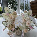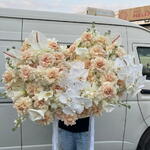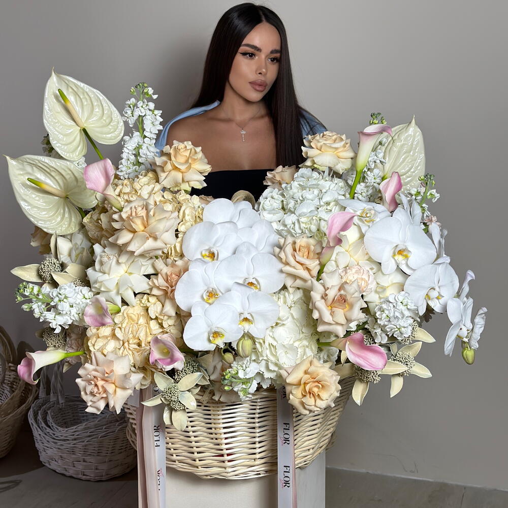 Hydrangea - 15 шт. Anthurium - 3 шт. calla - 18 шт. ecuador rose - 25 шт. delphinium - 10 шт. phalenopsis - 3 шт.