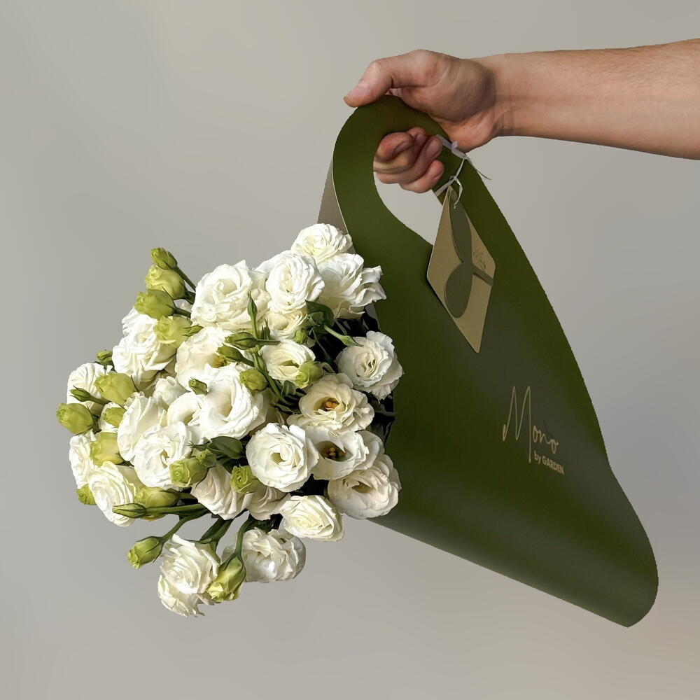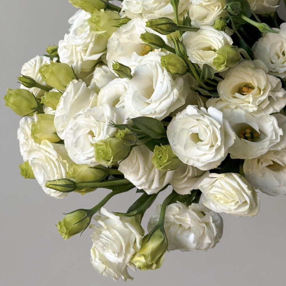 An elegant and sophisticated bouquet of white eustoma maintains its freshness for 10-14 days, making it perfect for decorating your home and a stylish gift for any occasion.
