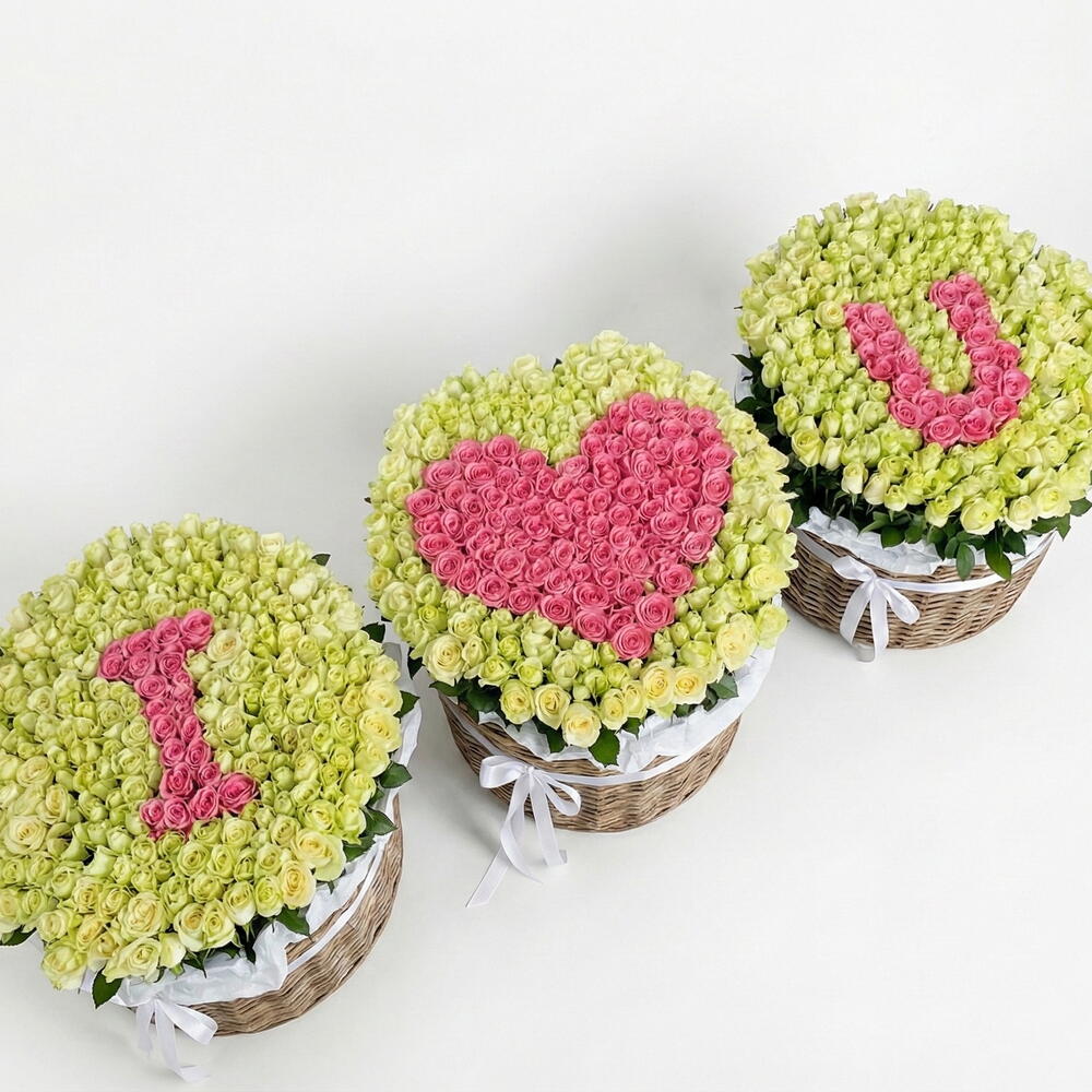 Создайте нежный, но в то же время сильный романтический образ с помощью этого великолепного набора для букета «Я ❤️ тебя» в бело-розовых корзинах, составленного из 601 розы премиум-класса. Эта роскошная композиция включает в себя: • 450 свежих белых роз, образующих основание каждой корзины • 151 розовую розу, тщательно составленную в буквы «I» и «U» с розовым сердечком в центре • 10 розовых гелиевых шаров для дополнительной высоты, праздничного эффекта и драматического воздействия Плетеные корзины с элегантной ленточной отделкой добавляют изысканности и роскоши — идеально подходят для Дня святого Валентина, предложений руки и сердца, годовщин или незабываемых сюрпризов. Этот дизайн нежный, элегантный и романтичный — мечтательная альтернатива классическому красному цвету, но при этом создающий грандиозное впечатление. ✨ Всего роз: 601 ✨ Цветовая гамма: Бело-розовый ✨ В комплекте 10 розовых гелиевых шаров ✨ Роскошная композиция Признание в любви… но в бело-розовых тонах. 🌸