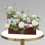 Pink rose - 4 шт. White rose - 6 шт. alstroemeria white - 2 шт. carnation spray - 2 шт. гиперком - 4 шт.