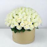 Этот роскошный букет кремово-белых роз излучает элегантность и изысканность, что делает его идеальным подарком для любого романтического случая или торжества. Помещенный в стильную круглую бежевую шляпную коробку, он воплощает вневременную классику в современной интерпретации. Нежные лепестки цвета слоновой кости мягко раскрываются, открывая теплую, сияющую сердцевину, символизирующую чистоту и искренние чувства. Свежая зеленая листва у основания добавляет естественный контраст и глубину, подчеркивая пышный вид букета. Чтобы букет оставался свежим, поместите шляпную коробку в прохладное помещение, защищенное от прямых солнечных лучей, и каждые 1-2 дня наполняйте флористическую губку чистой водой. Избегайте размещения цветов вблизи источников тепла и сквозняков, чтобы продлить их красоту. Этот букет наполнит радостью и изяществом любое пространство на долгие дни.