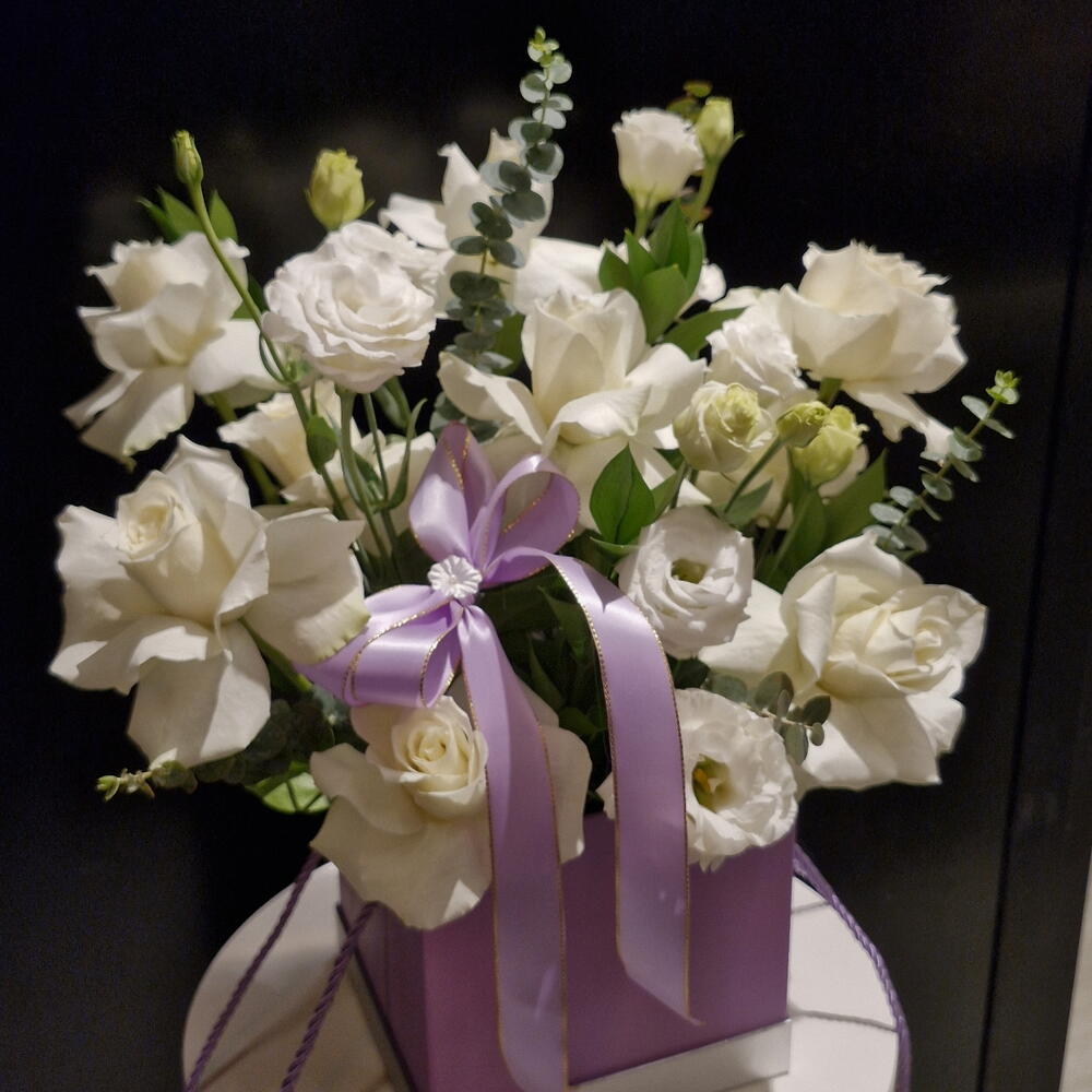 Белые розы в коробке