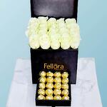 White rose - 20 шт. шоколад Ferrero - 20 шт. черная коробка для цветов - 1 шт.