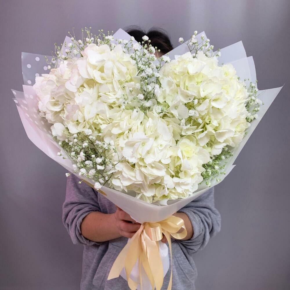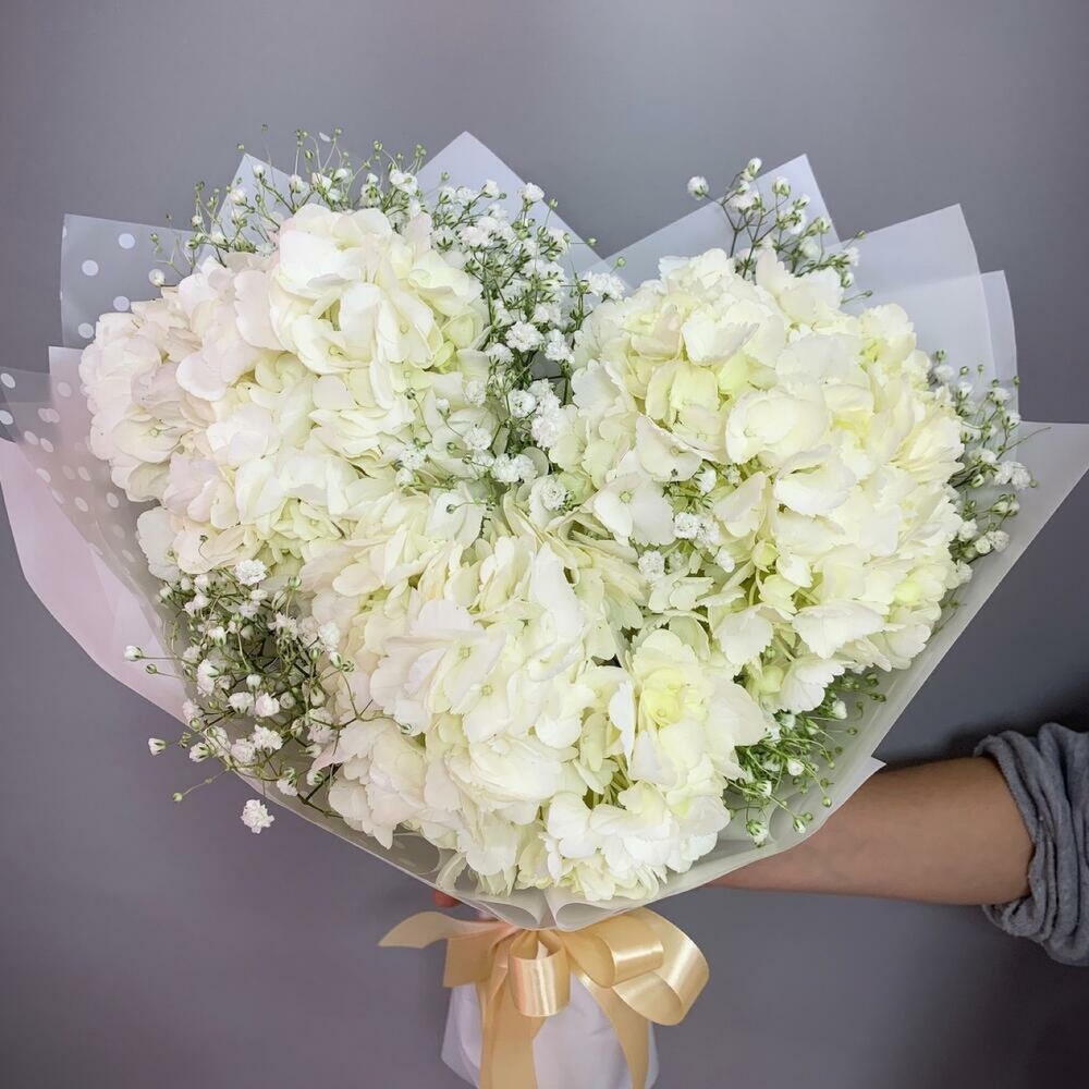 Gypsophila - 2 шт. wrapping paper - 2 шт. white hydrangea - 3 шт.