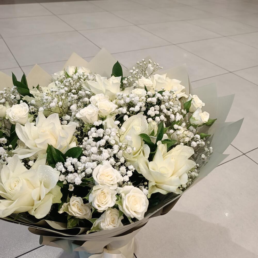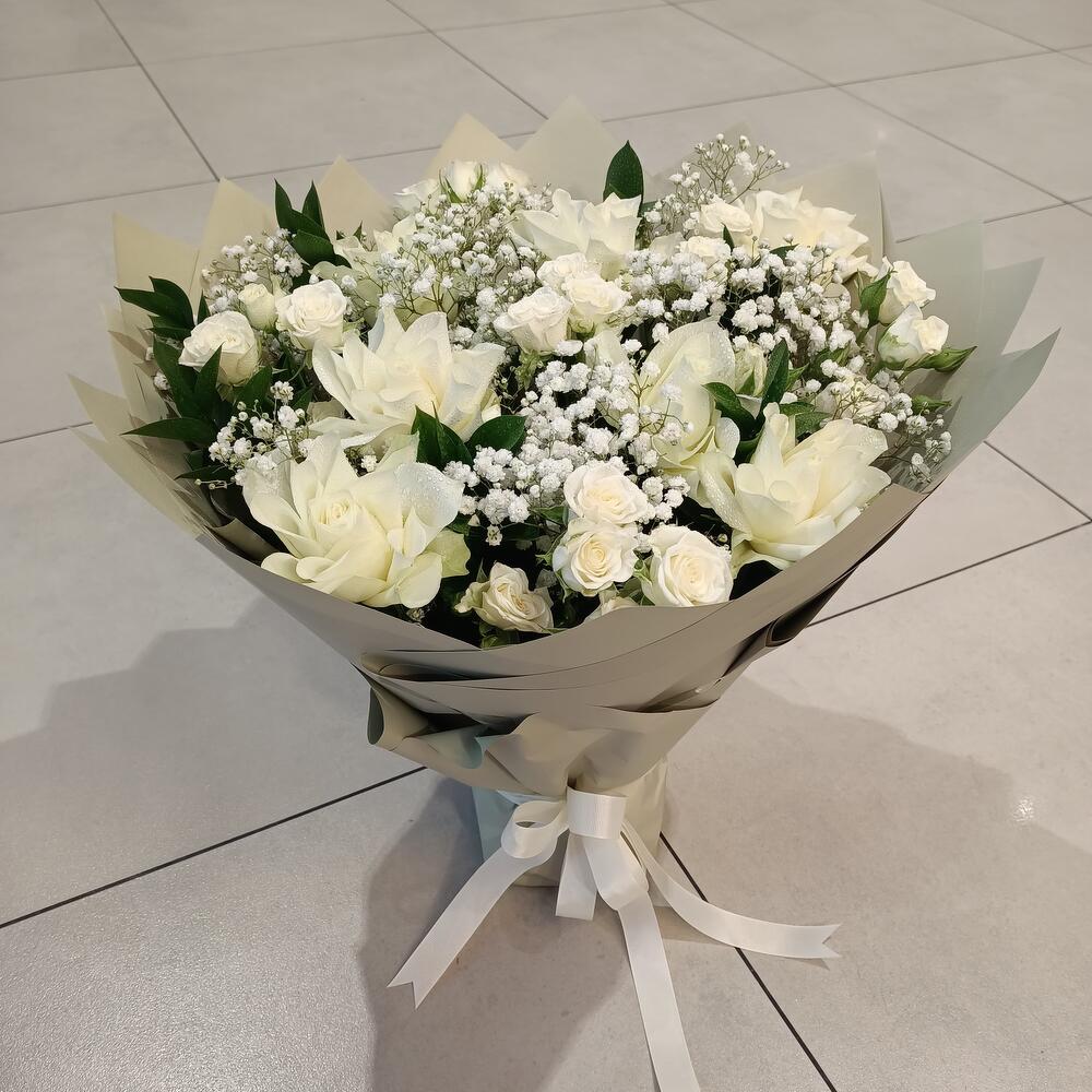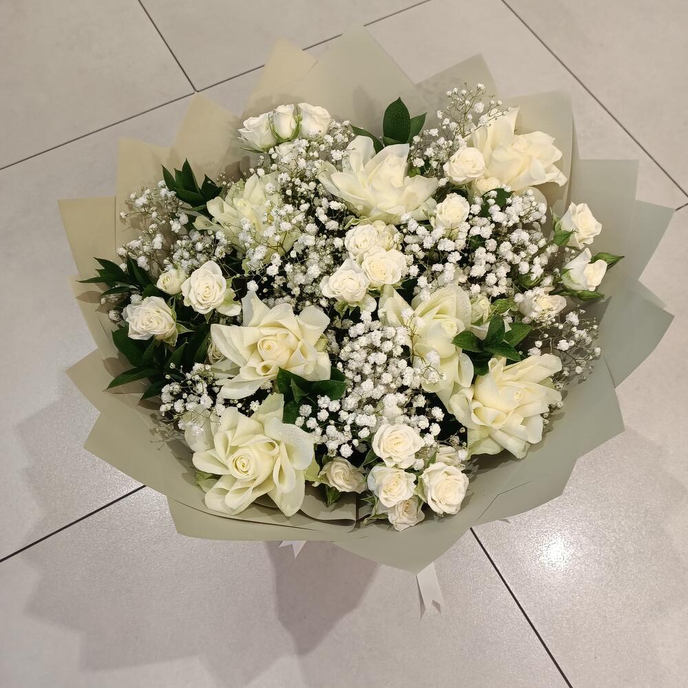 Gypsophila - 5 шт. roses - 8 шт. букет роз в брызгах - 5 шт. рускус - 5 шт.