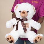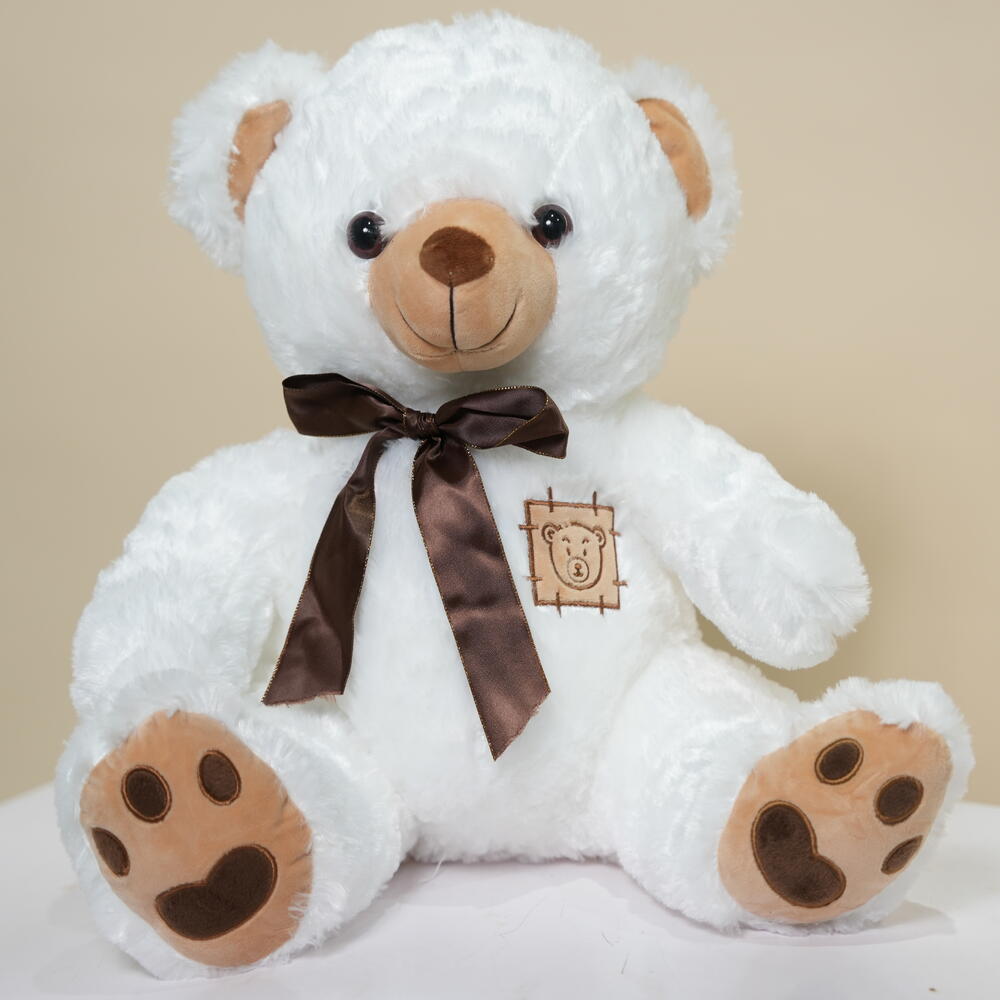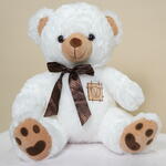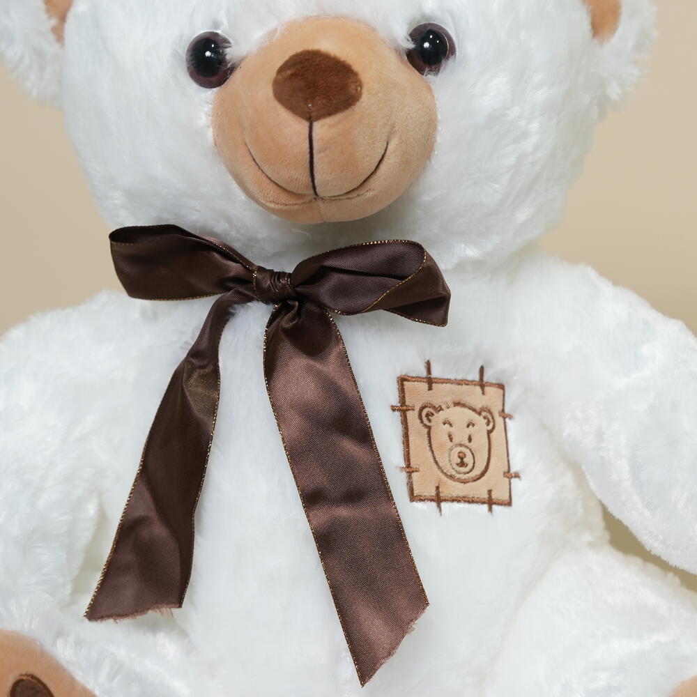 Белый плюшевый мишка с коричневым бантом 7348